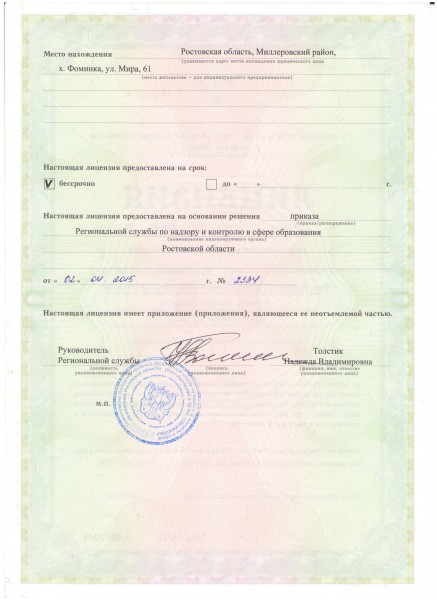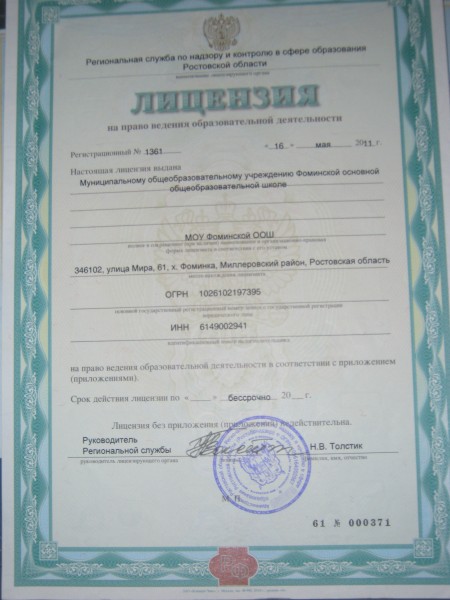 | Адрес местонахождения образовательной организации* | 346102 Ростовская область Миллеровский район х. Фоминка ул. Мира, 61 |